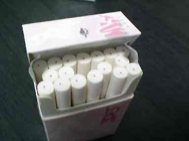 そして、これが全体のフォルムですね〜 書いてある文字が読めないんですが、きっと国産モノではないと思います。 そして、いよいよこのタバコに挑戦してみました。すると… 梅ガムだ!梅ガムの匂いがする!(;° ロ°) タバコのケースを良く見てみると、「Strawberry flavor」って書いてありました。 つまり、このタバコを作った人は、 梅ガムとストロベリーの臭いの区別がつかない人なんでしょう(オイ え?味はどうだったかって?いや、フツーにまずかったです。