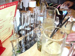 画像のは既に空いていますが、色取り取りの数種類の酒が試験管に入って登場。