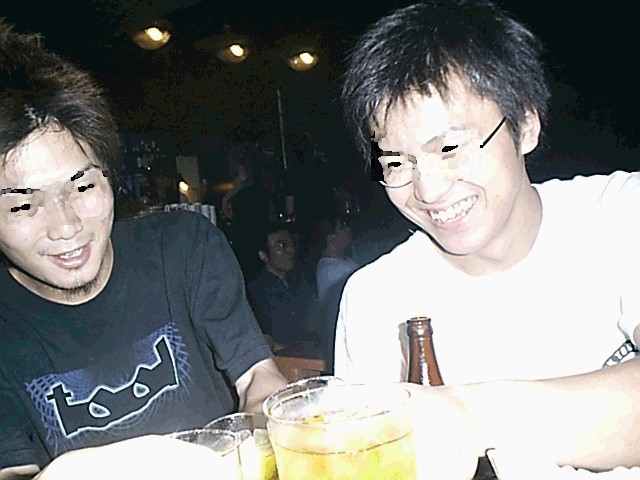 と言うわけで乾杯(^ ^)//゛゛゛パチパチ これは魔除けの聖酒です。ビールに見えるのは気のせいですよ? 私達が付いた席は座敷でした。畳の上でLIVEを鑑賞するのはさすがに初体験です(笑) でもこれがなかなか快適で、酒を片手にタバコを吸いつつマッタリできます。 単にこの4人は、わざわざ新宿までくつろぎに来たんでしょう(オイ さて、LIVE開始です。会場の照明が暗くなり奇妙なBGMが鳴り始めます。 そんな中で行われる木原浩勝氏と中山市朗氏のコンビは、 ボケと突っ込みが上手く成立していました(笑) LIVEと言っても内容はトークオンリーです。しかも時間は5時間以上。 こんな夜更けにダラダラとトークをしていたら客も眠ってしまいそうに感じますが、 ギャグをテンポよく入れる飽きさせないトークの勧め方は、感心しましたね。 見た感じ、寝ている観客は一人もいませんでしたよ(・∀・) 怪談の内容を書いてしまいますと著作権の問題上ちょっとマズイので 詳しくは言えないのですが、どれも興味深くて怖かったです。 トーク中に音声が途切れてLIVEが中断したりもしました。 やらせ?とかも思いましたが見た感じでは違う様子。 どうやら新耳袋では、LIVEを行うたびになにやら不具合が生じるそうです。 スタッフは馴れた様子で問題を片付けていましたが・・・ 原因不明の時点でちょっとシャレになってないんじゃ(^^;) そしてAm5:30にLIVEは終了です。 拍手(かしわで)を全員で打って厄を払うのが新耳袋流らしいです。 さらには「敷地の外に出てから入り口にある塩で体を清めてください」とか、 「家に帰るまでに何か物を食べて、家に厄を持ち帰らないようにしてください」とか、 言われました。そんなこと言われたら余計怖いっての(。_。;)