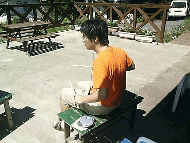軽音楽部合宿2日目。 今日から部員の本格的な音楽活動が始まりますヽ(´▽`)/〜♪ 私は昨夜の飲み会で完全にノックアウトしてそのまま熟睡。 で、起きたらAM4:30!この時間帯に起きても暇なので、 早速やりかけのエ○ゲーを早朝プレイ(爆) 結局、朝食の時間になるまでノートPCを見ながらニヤニヤしていました(´Д`) しかし、昨日のハードな飲み会の後遺症に苦しんでいる者が、私を含め、他多数。 せっかくの食事が気持ち悪くて食べられないってのはツライですよヽ(  ̄д ̄;)ノ 朝食後は、各自思い思いのことを行います。一人、熱心にドラムの練習に励む者