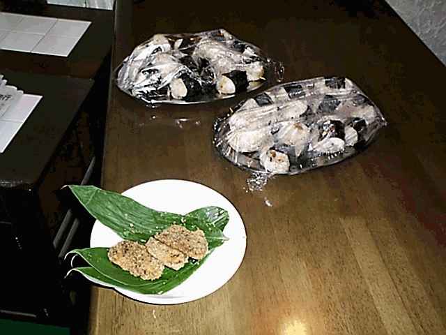 後輩達が夕食の残りのご飯で作った、夜食のおにぎりです。 これが癒し系なんですよねぇ( ̄ー ̄) このハードな飲み会で生き残った兵(つわもの)だけが食べられる、 戦利品といった物でしょうかね。