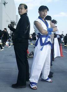 キムカッファン&山崎 竜二 萌え あまりにもかっこよかったんで撮ってしまいましたよ(ぉ あ、ちゃんと撮影許可もホームページアップの許可ももらってます。 撮影終了後、山崎竜二から名刺をもらったのにはかなり驚かされました(;´Д`) 喫煙所でカロリーメイトを食べていた時に、電話がなりました。 どうやら部員のkokoro氏のようです。 リベロ「こんちはっす」 kokoro「あ、リベロ〜俺今企業ブースにいるんだけど」 リベロ「私は白スクール水着を着たマルチに熱中しています」 kokoro「…………コスプレイヤーの顔は?」 リベロ「橋田壽賀子です」 kokoro「ぐはっ」 そんなアホなやりとりを交えつつkokoro氏と合流。 どうやら彼も軍資金が底を付いたようです。「音夢はじめ」なんて買うから…(^^;) 合流した後、お互いの戦果を報告。kokoro氏は私のHな紙袋を見て 「お前が絶対買うと思ったから、俺は買わなかった」と言ってました。 そんな当たり前のように言われたら立場がないんだよもん。 そして最後に向かうは東館。私とkokoro氏の先輩に当たる某氏が、 コスプレをして同人誌を売っていると言う情報を入手していたので、顔を出すことに。 そしてシスプリの同人誌を売っているのに、何故かちょびっツのチロルの店員に扮した某氏を発見。 私とkokoro氏は苦笑いでシスタープリンセスカレンダーを購入しました。 これでコミックマーケット63は終了。私とkokoro氏は帰宅となりました。 さっそく家に帰って中身を広げてみます。