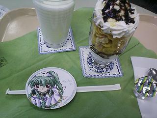 突発的に秋葉原に行くことになったので、部員に集合をかけてGAカフェに行くことになりました。 ちなみにGAとは「ギャラクシーエンジェル」を意味します。 集合をかけて集まったエロゲー部部員はkokoro氏のみ。 イベントレポートで言ったら、私はともかくこの人は常連です(^^;) PM3:00秋葉原駅到着。同時間にkokoro氏も着いたようです。 合流して「GAカフェ〜エルシオール喫茶室」の所在地である、ゲーマーズ本館1号店へ向かいます。 オタクなポスターで張り巡らされたエレベータに乗り込み、7階に到着。 するといきなり御挨拶な看板が…圧倒されました(笑) いつ開店されたのかは未確認ですが、kokoro氏曰く 「ブロッコリーは株価が右下がり…いつの間にか店ごと無くな…」 …的なことを話していました。先手を打っておくと言うことでしょうね(笑) しかし、今回私達二人は元ネタであるギャラクシーエンジェルを見たことがありません(ぉぃ ただネタの香りがする所へ、何も知らずに足を運んだだけのことですよ。 店内に入ると、企業のスペースにテーブルとイスだけを設置して作った、即席喫茶店であることが明白でした。 …つまり潰しが利くと言うことでしょう。 でも店員さんがコスプレをしているだけで、喫茶店の雰囲気そのものはちっともGAではありません。 客層も濃ゆそうな人達ばかりだし…奥の方でアクエリアンエイジに興じる4人組が確認できました(;´Д`) この店では食券を買って店員さんに渡すというシステムを取っているようです。 早速何か買って食してみようと食券販売機に向かった矢先、そのメニューの内容に驚愕しました。 エルシオール定食 900円 宇宙クジラ丼 800円 エンジェル隊セット 700円 リベロ「kokoroさん…この船は沈みますね」 kokoro「宇宙クジラか…1度は見てみたいもんだな」 意気消沈気味の二人。ここでkokoro氏が新たに怪しげなメニューを発見しました。 アキバセット 400円 GAでもなんでもないじゃん!( ̄□ ̄;) 秋葉原に店があるからアキバセットか…もうこのセンスには脱帽です。 取りあえず私はエルシオール定食、kokoro氏はエンジェル隊セットに決めました。 食券を購入してカウンターに行くと、奥の方に引っ込んでいたコスプレ店員が出てきます。 店員「いらっしゃいませ〜食券をお預かりしますね。お好きなテーブルに着いてお待ちください」 と、言われたのでテーブルに着くことに。禁煙なので私達喫煙者二人は手持ち無沙汰でした(^^;) 仕方ないので、二人でコスプレ店員鑑賞となりました。 リベロ「kokoroさん…あれ、あの店員!」 kokoro「あぁ…あれね〜かなりのババアだね」 リベロ「多分社員なんでしょうね…かわいそうに」 kokoro「夫も子供もいるぜ〜多分」 リベロ「家にあの制服を持ち帰って洗っていたら、子供になんか言われたりして」 kokoro「哀れだ。で、夜は夫にコスプレプレイを強要されて…」 二人の妄想にて制作する、GAコスプレ店員の悲しきストーリーが佳境に入ったところで、 店員さんが料理を運んできました(笑) リベロ「あの〜すいません。ここは撮影OKですか?」 店員「OKですよ。被写体に許可を貰ってから撮影をしてください。」 少なくとも、夫も子供もいそうな貴女を撮ることはないですよ と、言いそうになるのを堪えて取りあえず食事を取ることにしました。