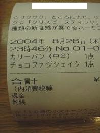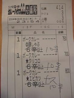 以上、 カレーを食べて速瀬水月で領収書キボンヌOFF2004FINALレポでした。終われ〜